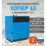 Теплообменник стальной для котлов «Хопер 63», конструктивной особенностью которого является прямоточно-вертикальный принцип движения теплоносителя, изготавливается из холоднокатаной стали толщиной 3 мм. Теплообменник выполнен в виде моноблока, что облегчает его замену. Прочность сварных швов проверятся давлением в 1,5 раза превышающим номинальное.